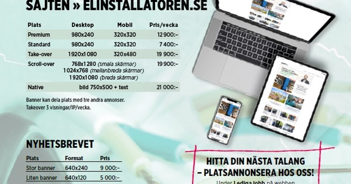 Annonsformat och prislista PDF - Elinstallatören 2025